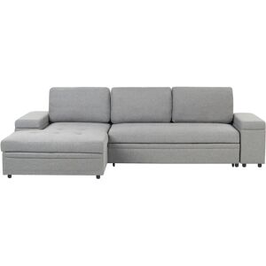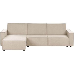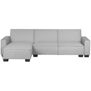 3 Seater Sofa with Armrest Storage. Upgrade your living room with this stylish and versatile corner sofa. Upholstered in soft yet durable faux linen, it features a convenient lift-up storage box. This 3-seater also offers a functional sleeper function and hidden armrest storage, making it a practical piece. Its timeless design complements many interior styles, creating a welcoming and functional space. Details: Product Type: 3 Seater Sofa Style: Traditional General Color: Grey, Black Shade: Light Grey Material Type: Fabric Main Material: Faux Linen Additional Material: Synthetic Material Filling Material: Fabric Material Composition: 100% Polyester Shape: L-Shaped Arm Style: Track Leg Caps/ Pads: No Modular Pieces: No Orientation: Right Hand Reclining: No Removable Cushion Covers: Yes Seat Construction: Sinuous Springs Seat Foam Density: 26 kg/m3 Seats Up To: 3 People Sleeper Function: Yes Sofa Bed Open Mechanism: Pull-Out Storage: Yes Dimensions: Armrests Height: 60 cm Depth: 161 cm