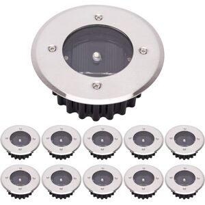 Set of 10 high quality LED solar floodlights. Material: Stainless steel tempered glass; Dimensions: about 8.5*3.5cm; The service life is 100,000 hours. Round solar lamp using the energy of the sun. During the day the batteries are charged with solar energy and at night the recessed floor lamps switch on automatically thanks to the day / night sensor. No electricity costs and tangled wires , easy installation. Attractive lighting for your driveway or garden / patio. Stainless steel and hard glass surface, strong pressure resistance. Protection class: IP 65 - Complete protection against contacts, protection against ingress of dust, Protection against ingress of water during immersion. Perfect for gardens, patios, paths, sand and concrete. Technical Specifications: 1. Product type: recessed floor spotlight 2. Waterproof: IP65 3. Light Color: Cool White 4. Bulb: 1 LED 5. Battery: 1 x 1.2V 60mAH NI-MH 6. Charging time: 5-8 hours 7. Working time: fully charged can light up 6-8 hours NOTE: