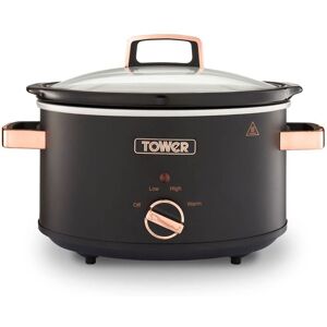 The Tower Cavaletto black slow cooker features a 3.5 litre capacity cooking pot which is ideal for cooking casseroles, stews and delicious meals for all of the family. Complete with 3 heat settings - Low, High and Warm. Ideal for planning meals ahead of time. The cooking pot is easily removable for cleaning in the dishwasher for convenience. The handles of the slow cooker are made from a cool touch material for easily serving straight to the table. The 3.5 litre black slow cooker also includes a glass lid, this allows the cooking to be monitored easily without losing any heat producing delicious hot meals. This elegant slow cooker is styled with a black and rose gold finish which fits perfectly suits and contemporary or modern kitchen. Complete with a 1 year manufacturer's guarantee which can be extended by an additional 2 years when you register the product online.