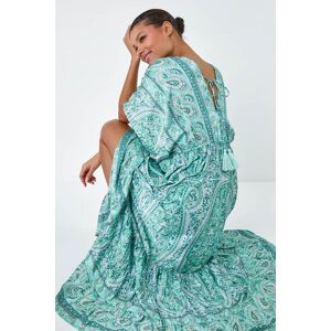 Tie Back Tassel Detail Tiered Dress by Roman UK Let your Summer style shine in this charming tiered Lilly and Hope dress Crafted from silky woven fabric this dress boasts a flattering vneckline and short floaty sleeves for a breezy feel The elasticated waistband cinches you in at the waist while the tie tassel details add a playful touch With a tiered maxi skirt for added movement this dress is perfect for those warm days with its cute tie back detail to finish Team with a denim jacket and wedges for a bohemian holiday look Womens Regular fit True to size 100 Polyester Machine Washable Length Approx 138cm 100 Polyester