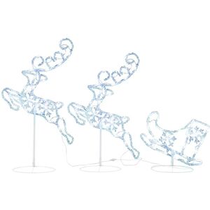 Decorate your garden or house with this unique collection. This 4 reindeers and sleigh Christmas decoration paired with warm white light bring out the true beauty in the season! Crafted from acrylic and PVC around a steel frame, this lighted reindeer is perfectly weather-resistant over the holiday