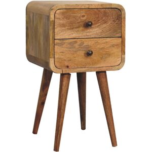 The mini version of our famous IN308, this small but handy bedside makes a perfect stand for nibbles, drinks, or a lamp. It will prove handy all over your home and is made from 100% solid mango wood in a fine oak-ish finish. It has curved edges which will fit into any home/living space. It also comes with 2 drawers that come with shiny knobs and 4 Nordic style legs. This petite bedside is part of Recession collection. Union Rustic
