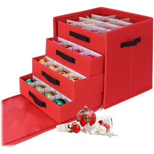 With the bauble box, you can efficiently organise your Christmas decorations while protecting them from dust and damage. The Christmas bauble box accommodates up to 128 Christmas baubles and features adjustable dividers to fit decorations of various sizes. Thanks to the transparent design, you can quickly see the contents of the Christmas bauble organiser, and the carrying handles make it easy to transport to the Christmas tree. Christmas bauble bag details - Dimensions H x W x D: approx. 31 x 30 x 60 cm - Dimensions per compartment H x W x D: approx. 7.5 x 7 x 7 cm - Weight: approx. 1.4 kg - Material: Plastic, cardboard, polyester - Colour: Transparent, red Plastic Christmas bauble organiser - For tidy and protected storage of Christmas baubles - Box with 128 compartments - Ample storage space for Christmas decorations - Adjustable dividers to accommodate decorations in various sizes - 2 side handles for easy transport to the Christmas tree - Transparent design for quick visibility