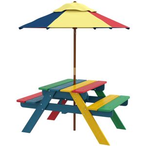 Feature: Includes a picnic table, two benches and an umbrella Umbrella is removable Suitable for two kids, each bench supporting up to 25kg Made with solid fir wood, its A-shaped frame promotes stability Easy to clean and maintain A suitable size for children, providing a comfortable sitting experience Suitable for ages 3-6 years Assembly required Specification: Colour: Multicoloured Material: Fir wood and polyester Overall dimensions: 142.5H x 85.5L x 75Wcm. Table: 53.5H x 75L x 40Wcm. Bench: 33.5H x 75L x 18.5Wcm. Umbrella: 142.5H x Φ120cm. Umbrella hole: Φ2.6cm Maximum weight capacity: Table: 20kg. Bench: 25kg Item label: 3E2-003V00MX 1 x Kids picnic bench 1 x Umbrella 1 x Manual