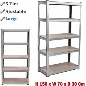 Product Measurements: * 5 Tier Shelf, Standard: H 150 x W 70 x D 30 Cm Main Features: * LARGE BAY SIZES - Capable of holding 175kg per shelf, max load 875kg. * HEAVY DUTY SHELFS - 5mm MDF Shelfs for extra strength not like cheap chipboard. * EASY BUILD - These boltless shelves are ideal as only a rubber mallet or a hammer may be needed so even the novice at DIY can build these(But this item not include rubber mallet ). * STRONG CONSTRUCTION - The Steel frame is made from heavy duty steel and has been powder coated to give it the extra special look. * ADJUSTABLE HEIGHT - It features five solid MDF shelves which are adjustable, moulded feet and can also be split to make two different units, a bench or a corner unit. Specifications: * Colour : Silver * Material : Steel & MDF * Max Load: 875KG / 1930lbs * Shelf Capacity : 175KG / 386lbs * Cleaning Instructions : Wipe With A Dry Cloth * Type: Bookcase, Display Cabinet, Shelving, Shelving Unit, Storage Unit, Shelving System, Storage.