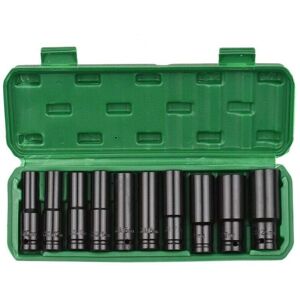 LONG SERVICE LIFE - 45# high impact steel sockets can withstand higher torque from impact tools and ensure long service life. Premium black oxide finish provides maximum protection against rust and corrosion. Enhanced Stability Design - 6-point Allen recessed design grips the flat sides of the fastener, not just the corners, preventing collapse when used with wrench impact and power fasteners under high torque and hammer stress. Rounded corners are degraded. VISIBLE SIZE CODE - All 1/2 drive deep impact sockets are etched with size markings for quick identification of gauge and drive socket size. File Case - Includes a sturdy plastic storage case for easy organization and storage of drive cases and for easy portability of the case. Most Common Sizes Included - Set includes 1/2 (Metric) high torque impact sockets: 10mm, 12mm, 13mm, 14mm, 15mm, 17mm, 19mm, 21mm, 22mm, 24mm Specification: Black Square Socket Size: 1/2 (78mm) Hex Socket Size (Metric): 10mm, 12mm, 13mm, 14mm, 15mm, 17mm,