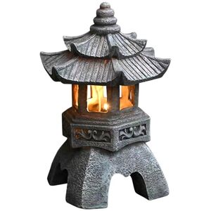 PERFECT DESIGN: Garden ornaments, four corner palace lanterns of ancient architectural design. How to use: Please turn on the switch ( the button) before use, and place it in a sunny place to charge. At night, when the surrounding environment dims, the light automatically glows. HIGH QUALITY: Made of high quality resin material, . FEATURE: This Japanese-style solar garden lantern creates a warm and inviting glow. Illuminate your evenings with the quiet energy of our gracious. No wiring easy To Install . APPLICABLE: Suitable for garden, lawn, pathway, walkway, yard and so on. size: 14 x 14 x 26cm Material: Resin style & colour: C- style palace lantern, Grey Package Contents: 1 x Solar Powered Resin Pagoda Lantern Only the above package content, other products are not included. Note: Light reflection and different displays may cause the color of the item in the picture a little different from the real thing. The measurement allowed error is +/- 1-3cm.