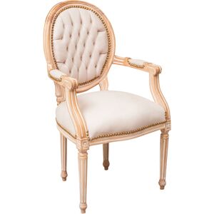 Entrance armchair in French Louis XVI style. Armchair with armrests made of solid beech wood, carved and finished by hand with antique white patina, length 56 cm, depth 58 cm, height 101 cm. Seat and backrest handcrafted upholstered in white. All measurements refer to the maximum size of the item. Elegant French Louis XVI design: This upholstered office chair is inspired by the classic style, with hand-carved details that add a touch of luxury to any environment. High-quality materials: Made of solid beech wood, these bed chairs are built to last. Solid wood offers exceptional strength and natural beauty that blends seamlessly into any decor. The padding makes the reading chair comfortable even for long hours. Antique white finish: The relaxation armchair features an antique finish that adds a touch of class and sophistication to its design. This detail makes it perfect for those looking for a furnishing element that expresses luxury and tradition. Unbeatable comfort: The seat and