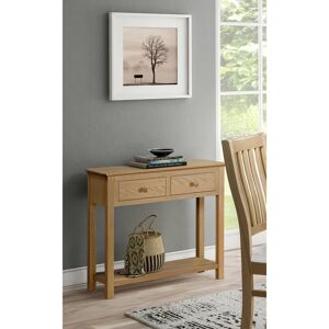 This two-drawer console table adds a stylish touch to any living area. Perfect for use anywhere you need a high surface with a little extra storage, such as living rooms or hallways. It has a large surface area, two handy storage drawers, and the added advantage of a low shelf for extra storage or display space. Incorporating a natural finish and contemporary design, our Marchwood Oak adds warmth, practicality, and style to any home. Marchwood features slim, petite sizes with lots of options and storage, all while paying homage to high-end, contemporary homes. ClassicLiving