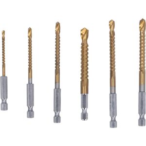 [6 Pcs Set] This set includes twist drill bits in sizes of 3mm, 4mm, 5mm, 6mm, 6.5mm, and 8mm, catering to your daily drilling needs. [Hex Shank Design] With 1/4 inch hex shank design, these twist drill bits are compatible with most power drills, providing easy connection. [Ti Coated HSS Material] Crafted from high speed steel with Ti coating, these twist drill bits offer durability, sharpness, and reliable performance for various woodworking tasks. [Efficient Drilling] The drill bit features 135 degree split point, can prevent walking during drilling, the sharply edges ensure quick and efficient drilling. [Versatile Applications] Suitable for grooving, drilling, or cutting 1 to 2mm thin wood, hardwood, plywood, MDF, plastic sheet, aluminum, thin iron sheet, etc. Item Type: Twist Drill Bit Material: High Speed Steel Size: Approx. 3mm / 0.12in, 4mm / 0.16in, 5mm / 0.20in, 6mm / 0.24in, 6.5mm / 0.26in, 8mm / 0.31in Shank Diameter: Approx. 6.35mm / 1/4in 6 x Twist Drill Bit