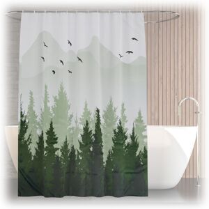 Shower Curtain, Pine Forest, 180 x 200 cm, Mould Resistant, Washable, 12 Rings, for Bathtub, Multicoloured - Relaxdays
