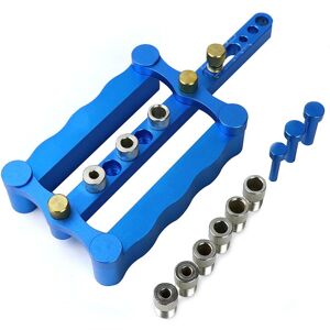 This dowel jig is made of industrial grade 6150 aluminum alloy with good strength and high corrosion resistance, durable and long service life. Large tripping range, the maximum is 60mm. Comes with 9pcs drill bushings in 3 sizes, meeting different needs of drilling wood holes. Specifications Material: Aluminum alloy < p>Blue color Drill bushing size: 6/8/10mm (3pcs/each type) Positioning dowel: 6/8/10mm Suitable wood size: 17-60mm/0.67-2.36inch Size: 23.5x10x3.8cm/9.25x3.94x1.50inch < p>Usage 1. Adjust the positioning scale to determine the distance from the first hole to the end of the card. 2. After fixing the position, select the drill bit that matches the drill bushings to start drilling. 3. Remove the nuts from the scale after drilling three holes 4. Use the locating pin to fix the hole on the third hole (make sure the distance of each hole is the same). 5. Drill all holes straight 6. Stick the round wooden stick firmly to the punched hole with glue. Package Included: 1 x