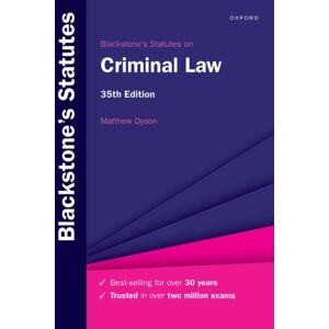 Unsurpassed in authority, reliability and accuracy; Blackstone's Statutes, trusted by students for over 30 years. Celebrating over 30 years as the market-leading series, Blackstone's Statutes have an unrivalled tradition of trust and quality.With a rock-solid reputation for accuracy, reliability and authority, they remain first-choice for students and lecturers, providing a careful selection of all up-to-date legislation for exams and course use. -Clear and easy-to-use, helping you find what you need instantly-Edited by experts and covering all the key legislation needed for evidence law courses, so you can use alongside your textbook to ensure you approach your assessments with confidence-Unannotated legislation - perfect for exam use-Also available as an with functionality and navigation features