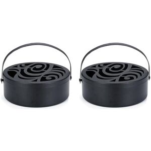 Classic retro hollow makes it a good decoration for , tea house and any other place that could well disperse mosquito coils. The handle allows you to move the mosquito box optionally without worrying about being scalded. EASY TO USE: Suitable for mosquito coils and incense coils, the ash stays in the holder, very easy to clean and reusable. SAFE: The incense holder allows the coils to be burned in a decorative and safe covered dish that protects the coils from tilting during burning, further eliminates the risk of fire. Occasion: The retro design not only decorates for your bedroom, kitchen, living room, but also easy to carry for outdoor camping, night fishing, tourism and other outdoor activities. Use: Portable handle design, it is easy to open the top cover, dump the dust inside, easy to use. Wide range of applications for , library, hotel and office. color: black Material: iron Size: 13.7x13.7x4cm Package including: 2 x Mosquito Coil Box Only the above package content, other