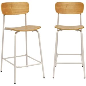Product highlights: Vintage: School type Seat and backrest in plywood with veneer Metal base, adjustable legs Footrest toby, the stools that elevate style Installed in front of a kitchen counter or a central island, the Toby bar stools bring a vintage touch that changes everything. Their school chair-inspired design revisits the classics with charm and character, perfect for warming up the atmosphere. Plywood brings a natural and welcoming note, while the metal base, in chrome or beige version, plays the card of discreet elegance. You feel good there, comfortably settled for a quick coffee, an aperitif with friends, or an impromptu dinner. And thanks to their adjustable feet, they remain stable, no matter where you place them. Dimensions and characteristics: Color: Ash wood effect / walnut wood effect Seat material: Plywood with veneer Backrest material: Plywood with veneer Base material: Steel Base color: Beige / Chrome Adjustable legs: Yes Number of bar stools: 2 Net weight: 4.4kg