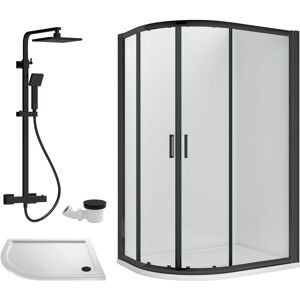 Balterley Ruwa Quadrant Offset Left Bundle: Tray, Round Kit & Waste, 1000 x 800 mm White/Black Transform your shower with Balterley’s offset quadrant bundle. With a matt black frame, slimline tray, round kit, and waste, it combines bold style, practicality, and long-lasting durability — all backed by a lifetime guarantee. The Ruwa 1000 x 800 mm offset left-hand enclosure features 6 mm toughened glass, smooth-glide sliding door, and Easyfit installation, delivering a modern and reliable upgrade for your bathroom. Product Highlights: Complete Set: 1000 x 800 mm offset left-hand quadrant with sliding door, slimline white resin tray, round shower kit, and waste Space-Saving Door: Smooth-glide sliding entry removes outward clearance, ideal for compact layouts while maximising showering area 6 mm Toughened Glass: Premium 6 mm safety glass for durability, clarity, and peace of mind in everyday use Matt Black Frame: Bold matt black finish creates a striking two-tone contrast with the crisp