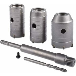 【Package Included】: Ø30mm, 40mm, 50mm drill bits, SDS+ chuck, pilot drill and 350mm SDS+ extension rod; This high-quality TCT concrete hole saw set includes everything you need to get started. 【Essential Parts Included】: This core drill kit comes with 1 locking screw and 1 pilot drill bit, which is very practical and helps to stabilize the drilling process and ensure that the tip of the drill bit does not move when drilling. 【High-quality Material】: This masonry cutter set is made of high-quality tungsten carbide tip material, which has high strength and excellent drilling performance, suitable for tough and long-term drilling operations, and is durable enough to last for a long time. 【Precision Cutting】: These tungsten carbide drill bits are ideal for cutting clean holes in concrete, brick and cinder blocks. [Wide Range of Uses]: Suitable for brick walls, red bricks, masonry walls, foam bricks, hollow bricks, etc. Can be used to install air conditioners, range hoods or washing