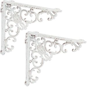 Do you like shelves that not only do their job, but also add special touches to your walls? Then the two cast iron shelf brackets in a rustic Shabby Chic look are just the right choice. You can mount shelves of all kinds on the wall with the angle brackets to showcase books, ornaments and more. The decorative lily pattern is a real eye-catcher and underlines the nostalgic vintage charm of the angle brackets. Shelf angle cast iron set of 2 in detail - Dimensions H x W x D: approx. 14.5 x 3.5 x 14.5 cm - Weight per holder: approx. 450 g - Max. load per set: 15 kg - Material: cast iron - Various colours Decorative shelf supports for the wall - Various shelves can be attached flexibly - Rustic antique style as a special eye-catcher - Decoratively adorned with opulent lily ornamentation - 3 drill holes for wall and shelf each - Vintage design for nostalgic charm on the wall Included in delivery - 2x angled shelf supports (without mounting material) - Decorative items are not included