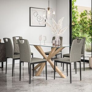 More4homes - Etta Glass Dining Table And Chairs - Glass Top w Solid Oak Legs + Monza Fabric Dining Chair Set Of 6 (Beige)