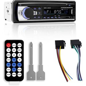 100% New, high quality Built-in Bluetooth function on microphone. Hands-free calls Supports Advanced Audio Distribution Profile Off time display function Digital high-quality FM stereo radio, Preset 18 stations (frequency: 87.5-108 MHz) Support USB / SD / MMC card reader Support Audio: MP3 / WMA / APE / FLAC / WAV, etc. Support folder function Support breakpoints and ID3 Play Support Remote control Rotary Volume Control MP3 randomized, 10 track up / down playback Electronic control volume treble, bass, balance Multiple EQ Scene Selection: jazz, rock, , classical, etc. Mute and Loudness control L / R audio output jacks 4-channel high power output (4 loud speaker, 60W x 4) Voltage: DC12V NOTE: This is NOT a CD player Material: ABS colour: Black Package Contents: 1 x Bluetooth Car Stereo Player 1 x Remote Control 2 x Wire(random colors, don't accept the specified color) 2 x Disassembly Tools 1 x English instructions Only the above package content, other products are not included. Note: