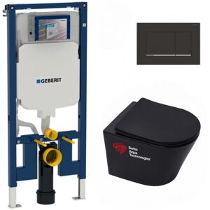 Features of the toilet set UP320 support frame + SAT Infinitio rimless toilet matt black + Softclose seat + Black flush plate (GebBlackInfinitio-G) : Geberit Duofix wall mounting frame UP320 (111.300.00.5) Swiss Aqua Technologies Infinitio wall-mounted toilet, black matte without flange and invisible fasteners + softclose seat (BlackInfinitio) Geberit Sigma30 Two-touch release plate, Black (115.883.DW.1) Geberit DUOFIX wall mounting set (111.815.00.1) Discover the easy and seamless installation of the Geberit module with this helpful video guide. Click the link to get started! https://www.youtube.com/watch?v=QgP0aSEW2ZE Geberit Duofix wall mounting frame UP320 (111.300.00.5) : For installation with floor structure from 0 to 20 cm For mounting in walls or partitions For mounting in a wall at room height For wall-mounted toilet bowls with 18 cm or 23 cm fixing distance Geberit Sigma concealed cistern 12 cm, front operation 2-volume flush, suitable for Geberit Sigma01, Sigma20, Sigma50,