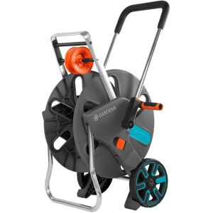 The Gardena AquaRoll LEasy enables space saving storage of garden hose and is designed to be easy and convenient to use. Fitted with an ergonomic softgrip crank and a sturdy hose guide, the hose can be efficiently unwound and rewound in between watering tasks, saving time and effort. A fold out kickstand ensures the trolley stays in place when in the parked position, even when the hose is pulled. The Gardena AquaRoll L Easy is made in Germany and comes with a 5 year warranty to guarantee a long service life. Specifications • Max Capacity: 100 m 13 mm (1/2"), 80 m 15 mm (5/8"), 50 m 19 mm (3/4") Features & Benefits • Hose trolley with convenient handling • Fold out kickstand for high stability during use • Hose guide ensures hose is rolled up evenly without having to guide it by hand • Anti-drip device prevents water from leaking while transporting the trolley • Angled hose connection prevents hose from bending, guaranteeing maximum water flow • Innovative frost resistance for extended durability • Ergonomic softgrip crank handle • 5 year warranty Contents • Gardena AquaRoll L Easy Hose Reel • 50 metre Hose