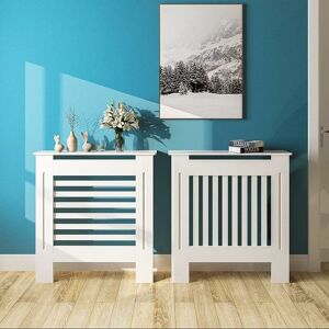 Specifications: The package includes: -- 1 radiator cover Product Size: -- Small: H 82 x W 78 x D 19 Cm approx. -- Medium: H 82 x W 112x D 19 Cm approx. -- Large: H 82 x W 152 x D 19 Cm approx. These white radiators, which are small, medium and large, add to the elegance and style of any home and offer many benefits. -- For example, a metal radiator cap hides an old or unfashioned heat sink. -- In addition, the long radiator cover protects your hands from hot surfaces. -- Finally, a single radiator cap provides additional shelves for photos and decorations. Made from reliable and sturdy high-quality MDF, the large, medium and small wooden radiators feature a modern slotted grille with smooth edges and simple assembly. Available in flat packs, all radiator caps are supplied with instructions and accessories that can be attached to the wall with existing heat sinks. The horizontal radiator cover strip is machine-cut and has a first-class modern look, which adds to the benefits already