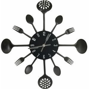 Decorate your kitchen or eating area with this attention-grabbing wall clock. This wall clock is decorated with forks and spoons, making it an attractive piece for your interior. The clock dial is located at the centre of the circle with clear numbers so that you can tell the time quickly and easily. Colour: Silver Material: Aluminium Diameter: 31 cm Requires 1 AA battery (not included) Max. loading capacity: 110 kg SKU: 325162 This product must not be disposed of with other household waste in the European Union. EU responsible party Haba Trading B.V. Mary Kingsleystraat 1 5928SK Venlo The Netherlands Compliance-safety@vidaxl.com