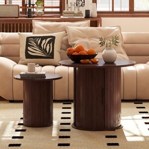 The newly upgraded set of coffee tables comes with one large and one small coffee table, which can be combined together as a coffee table or used separately as a side table, increasing their functionality. The coffee table is composed of high-quality MDF boards and metal frames, making the entire coffee table more sturdy and durable. This coffee table set is different from previous designs in that the large coffee table has hidden storage space, which only requires gently pushing and pulling the handle. It is not only more beautiful but also increases its practicality. You can use it to store magazines, books, cups, etc., saving more space. The small coffee shop adopts a Velcro design mode. During installation, simply stick the boards together and open the Velcro small coffee table to store some items, providing you with a secret storage space. There is a non-slip pad at the bottom of the coffee table, which not only prevents it from scratching the floor, but also makes it more in line with the floor, increasing stability. This combination of coffee tables can blend with various styles of decoration. It is a good choice for a living room, bedroom, office, small apartment as a coffee table, end table, side table, tea table. Artist Hand Colour: Walnut