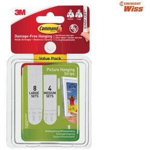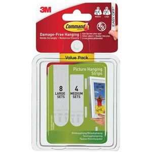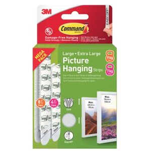 For use at home or in the office, these Command Picture Hanging Strips are an innovative solution for hanging picture frames and artwork securely and damage free. They hold strongly and remove cleanly using 3M stretch release technology. Without the need for nails or tools of any kind, these large hanging strips hold up to 7kg. This pack contains 24 adhesive strips in white.