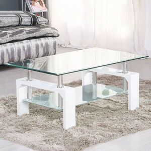 Classic and Modern Design - Beautiful Clear tempered glass coffee table and metal Legs are an elegant addition to any living space. Special Metal Storage Shelf - Coffee Table with Storage Shelf. The upper tabletop can hold coffee, decorations, etc. The lower space can hold books, organizers, etc. Heavy Duty and Steady Glass Coffee Table - Crafted MDF base, 4x stainless steel support, 6MM high-quality durable tempered glass. Tempered glass is characterized by its increased strength, resistance to bending, and high load-bearing capacity. Suitable For Multiple Places - 100x60x45cm (LxWxH). Modern style table suitable to use in office, store, living room, guest room, or bedroom as a coffee table, end table, sofa table. Silent Non-Slip Feet - With a silent scratch-resistant foot pad to prevent the leg's wear and tear, while protecting the floor. Specification Dimensions:100x60x45cm Material: Metal、Glass Color: Black/ White/ Natur/ Vintage Brown/ Vintage Black Package Includes: 1x Coffee
