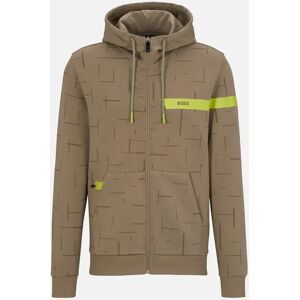 Men's Men's Sand/Light Green Hugo Boss Full Zip Logo Stripe Hoodie - Cream/Brown - Size: 40