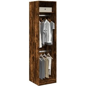 Clean up your clothes and easily pick out your outfit with this wardrobe! Durable and sturdy material: The engineered wood is of exceptional quality with a smooth surface and also features strength, stability and resistance to moisture.Ample storage space: This hallway cupboard with 2 compartments provides ample storage space for your clothes, hats, gloves or other essentials.Stylish and compact design: The clean lines and minimalist design make the armoire blend into your room perfectly and is also perfect for small space due to its compact size. Warning:To prevent it from tipping over, this product must be used with the provided wall attachment device. Colour: Smoked oak Material: Engineered wood Dimensions: 50 x 50 x 200 cm (W x D x H) Assembly required: Yes