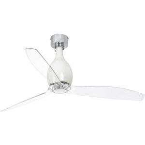 Specification This offers a large variety of fittings in different finishes and sizes. The fittings are ideal in a modern setting. offers the option to customize the colour; please contact us for details. This medium fitting is designed for rooms between 13 and 17.6m2. Compatible with light kit accessory; available for order separately . DC motor. Remote control included. Summer/winter function. Wattage: 3-6-9-13-22-32. RPM: 51-77-103-129-155-185. Finish: Clear Material: Glass Height (cm): 45.00 Diameter (cm): 128.00 IP Rating: IP20 Bulb Included: No Reversible Switch (Summer / Winter): Yes Weight (kg): 5.20 Description This offers a large variety of fittings in different finishes and sizes. The fittings are ideal in a modern setting. offers the option to customize the colour; please contact us for details. This medium fitting is designed for rooms between 13 and 17.6m2. Compatible with light kit accessory; available for order separately . DC motor. Remote control included.