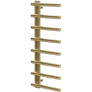 Model Number: WDB12837 Add a striking look to your bathroom with the Colore Brushed Brass 1200mm x 500mm Heated Towel Rail. Larger in size at 1200mm x 500mm, this thermostatic towel rail features 21 bars and allows you to hang and dry multiple towels simultaneously. When not holding towels, the towel rail can create a real focal point in your bathroom with its modern brushed brass finish. Complement this with our extensive range of Colore brushed brass bathroom accessories to create a cohesive and flush look throughout your room. Key features Brushed brass finish Wall mounted with fittings included 21 bar design Other sizes available Product Notes: Radiator valves sold separatley