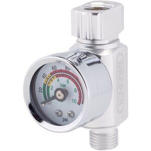 Description générale This compact 1/4" BSP on-gun air regulator is designed for use with air tools. It helps control and monitor air pressure to ensure optimal performance and safety during operation. The regulator features a dual-marked pressure gauge for easy reading in psi and bar, making it suitable for various pneumatic applications. Its lightweight design allows for easy installation and maintenance, making it a practical choice for DIY and home improvement projects. Spécifications techniques Thread size: 1/4" BSP Pressure gauge diameter: 33mm Gauge markings: psi and bar Material: Metal and plastic components Compact and lightweight design Compatibilité et accessoires Compatible with most pneumatic tools requiring 1/4" BSP connection Includes the regulator and pressure gauge Installation Attach the regulator to your air tool or compressor using the standard 1/4" BSP thread Ensure all connections are tight to prevent leaks Utilisation Adjust the pressure setting to your desired