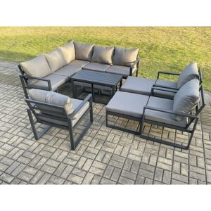 This aluminium Outdoor garden furniture set can be used both indoors and outdoors,with high quality aluminium Frame construction for sturdiness and long lasting. it can also be placed on the patio or balcony,The design of this patio lounge sofa set is a perfect blend of country chic and modern minimalism, adding an elegant touch to your house. Set Dimensions: • 1 x Left Sofa with single armrest: 125W x 70D x 78H cm • 1 x Right Sofa with single armrest: 125W x 70D x 78H cm • 1 x Corner Sofa:70L x 70W x 78H cm • 3 x Chair Size: 74L x 70W x 78H cm • 2 x Big footstool :60L x 60W x 35H cm • 2 x Fully Assembled Stool Size: 40L x 40W x 36H CM • 1 x Oblong Coffee Table:97L x 52W x 51H Dark grey powder coated with dark grey fabric .Color may vary little due to light or monitor .we are unable to return the item due to color problem .please contact us before purchase if you have requirement on color saturation. Items Comes Flat Pack And Easy Assemble, Alloy Aluminium Frame With Powder Coating To