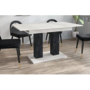 Add a modern touch to your living space with this stylish dining table. The white marble and black concrete effect finish creates a contemporary and elegant look that complements any home decor. Extendable from 140cm to 180cm, it is suitable for areas limited by space or in need of accommodating extra guests. Suitable up to 8 persons when extended. The extra tabletop leaf ishidden below when not in use. Note that this is a flatpack item and will require assembly. Picture instructions, and a written notice are included with the item, these should be looked over carefully, before attempting assembly. Chairs are NOT included. Metro Lane