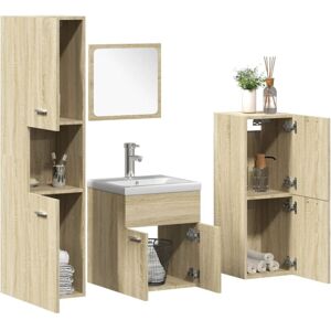 This bathroom furniture set is an excellent addition to your bathroom, giving it a tidy and striking appearance! Long-lasting material: The engineered wood is of exceptional quality with a smooth surface and also features strength, stability, and resistance to moisture.Ample storage space: The storage cabinet offers ample space to easily accommodate your essential toiletries and bath items such as soaps, shampoo, toothpaste, etc.Practical basin: The washroom basin is equipped with an overflow device that drains water when it overfills, serving not only as a utensils for daily use, but also as a decoration for the living space.Wall-mounted function: The bathroom cupboard and the make up mirror can be wall-mounted for extra storage space. That way, you can maximise your floor space and keep the area clean.Easy to maintain: Thanks to its smooth surface, the bath cabinet and basin are easy to clean with a damp cloth and requires less maintenance. Good to know:Screws and plugs for inside