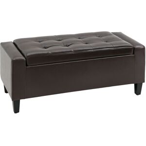 Keep your home tidy and organised with this storage ottoman from HOMCOM. A simple design, it will bode well in your home and office, with its sleek faux leather upholstery and modern boxy shape. The solid wood frame ensures it is sturdy and durable, and it is covered in sponge padding for comfort so you can sit comfortably. A flip lip reveals a 21x70cm compartment, which gives you a moderate amount of storage room. The perfect way to keep your home decluttered discreetly. Specifications: • Brand: HOMCOM • Colour: Brown • Materials: PU leather, sponge, rubber wood and poplar wood • Dimensions: 40H x 92W x 40Dcm. Inner storage: 21H x 70.5W x 32.5Dcm • Weight capacity: 150kg • Custom label: 838-022V71DR Features: • Stylish design will look great placed anywhere: faux leather upholstery, with tufting on the top • Sponge-filled lid for comfort • Flip lid with two safety hinges: easy to open and close • Handy medium-sized storage compartment • Wooden frame and four wooden feet for a strong