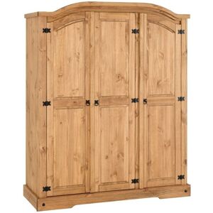 Introducing the exquisite Corona 3-Door Wardrobe, seamlessly blending rustic charm with modern convenience. Crafted with meticulous attention to detail, this wardrobe offers both style and functionality. Delivered in a convenient flat pack, assembly is a breeze with the included clear and concise instructions, making it accessible for all DIY enthusiasts. The spacious interior boasts ample hanging space behind three sturdy doors. Its timeless design features rich, distressed waxed pine, exuding warmth and character, while the antique black metal hardware adds a touch of elegance. Elevate your bedroom with the Corona Wardrobe - a true marriage of classic style and contemporary practicality.
