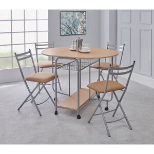 This compact bistro set for two not only has ample space to eat or work, but it also has built-in spaces for housing crockery, cutlery, crafting equipment, and even 4 bottles of wine. With space saving in mind when this set was designed, it is perfect for a kitchen or living area where space is premium. Manufactured from sturdy powder-coated steel and laminated MDF, the two seats have comfortable fabric-covered seat pads (user weight 110kg). Easy home assembly. 17 Stories Colour (Table Top): Oak