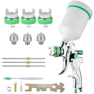 Professional gravity-fed HVLP spray gun with 3 material nozzles: 1.4 mm, 1.7 mm, 2.0 mm. Allows the application of a wide variety of coatings and finishes. This spray gun makes spraying more even, easier to control, and produces less overspray. Ideal for spraying primers, varnishes, and other high-viscosity coatings, as well as for priming, finishing, and detailing in residential and industrial applications, including the automotive industry, as well as for painting furniture and appliances. Comes in a convenient box for easy storage! Stainless steel needle and nozzle for durability and suitable for water-based paints. The powerful low-pressure technology applies paint with less force and prevents paint splashing.