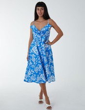 This lightweight midi dress will be an essential for your summer wardrobe. Flare fit, floral print and angel sleeves will keep you cool when things start to heat up. Pair with pair of sandals for a chic summer look.100% PolyesterMade in ChinaMachine washableV necklineShort sleevesWrap frontModel wears a size 8Model height 179cm/ 5ft 10