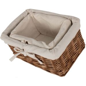 Set of two log baskets finished in full double steamed buff and rustic willow with external handles and hessian lining. Measurement shows largest basket Measurements can vary slightly due to the product being made from natural materials Size Length 55 x Width 55 x Height 58cm