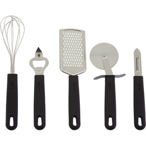 Expertly crafted from robust stainless steel, this gadget set in a light gold finish is essential for budding chefs and cooks. This kitchen utensil set is complete with ergonomic plastic handles in a black finish to ensure a soft grip while making food.