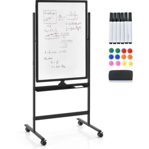 Perfect for both adults and kids, this double sided lockable whiteboard will become an essential tool for teaching, presentations, and more! Featuring adjustable height, this whiteboard is suitable for users of different ages, whether for adults or for kids. In addition, featuring a sturdy aluminum tube frame, the flipchart board is built to last. Not to mention the 360 flip mechanism with a locking button, which allows for effortless flipping to the other side to meet your writing space need. For added convenience, the whiteboard comes with a marker tray to keep your markers organized and within easy reach. Further more, included in this product are 6 black markers, 1 board eraser, 12 magnets, 2 clips, 25 writing papers, and 2 installation tools, and with this comprehensive set, you have everything you need to get started right away. Last but not least, the board is equipped with 4 lockable wheels to provide excellent mobility and stability durinfg use. Whether you're in a classroom, office, or home setting, this whiteboard is the perfect tool for brainstorming, teaching, presentations, and more. Get yours today and experience the convenience and versatility this whiteboard offers! Costway Double-Sided Magnetic Rolling Erase Board Mobile Whiteboard Adjustable in White