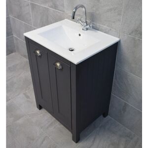 Traditional Style Vanity Unit with Built-In Sink and an Optional Tap: Tongue and grooved sides Constructed from high quality MDF Ceramic basin Includes decorative handles Light grey oak colour, in a soft vinyl finish (see pictures) Unlike other listings, our units come ready assembled (not flat pack) Vanity Unit sizes (approx): Width: 615mm Depth: 470mm Height: 870mm Optional Iris Tap: Elegant curved design Traditional style Made from Solid brass Chrome finish 0.1 bar minimum pressure Includes Click Clack waste