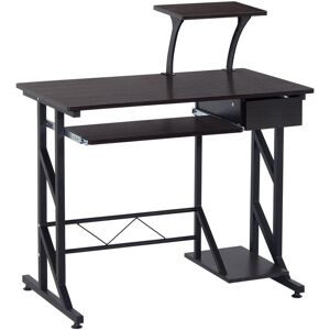 " This stylish computer desk is constructed of quality steel and MDF for daily years of use. It has a compact design to use the smallest amount of space, so great for small rooms. Comes with a large workspace, a sliding keyboard tray, a movable elevated shelf, a drawer and a CPU stand for your monitor and daily work items. Equipped with anti-slip feet to make your desk more stable and secure. This modern home office desk is ideal for both home and office. Specifications: • Material: Steel, MDF • Colour: Walnut • Weight Capacity: 100kg • Overall Dimension: 90L x 50W x 100H (cm) • Sound Shelf: 34L x 23W x 24H (cm) • Drawer Panel: 21.5W x 10H (cm) • Internal Dimension: 16W x 29.5D x 8H (cm) • Keyboard Shelf Size: 55.5L x 23.5W (cm) • Host Shelf Size: 34L x 23W (cm) • Custom Label: 920-018 Features: • Heavy-duty steel and MDF board material in hard wearing and durable construction • Space saving and practical furniture suitable for office, home, dorm room and so on • Drawer is helpful for