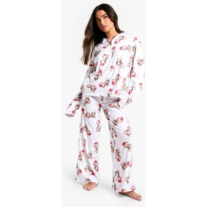 Boohoo Womens Petite Christmas Bear Print Pyjama Set - Brown - Size 12 Uk